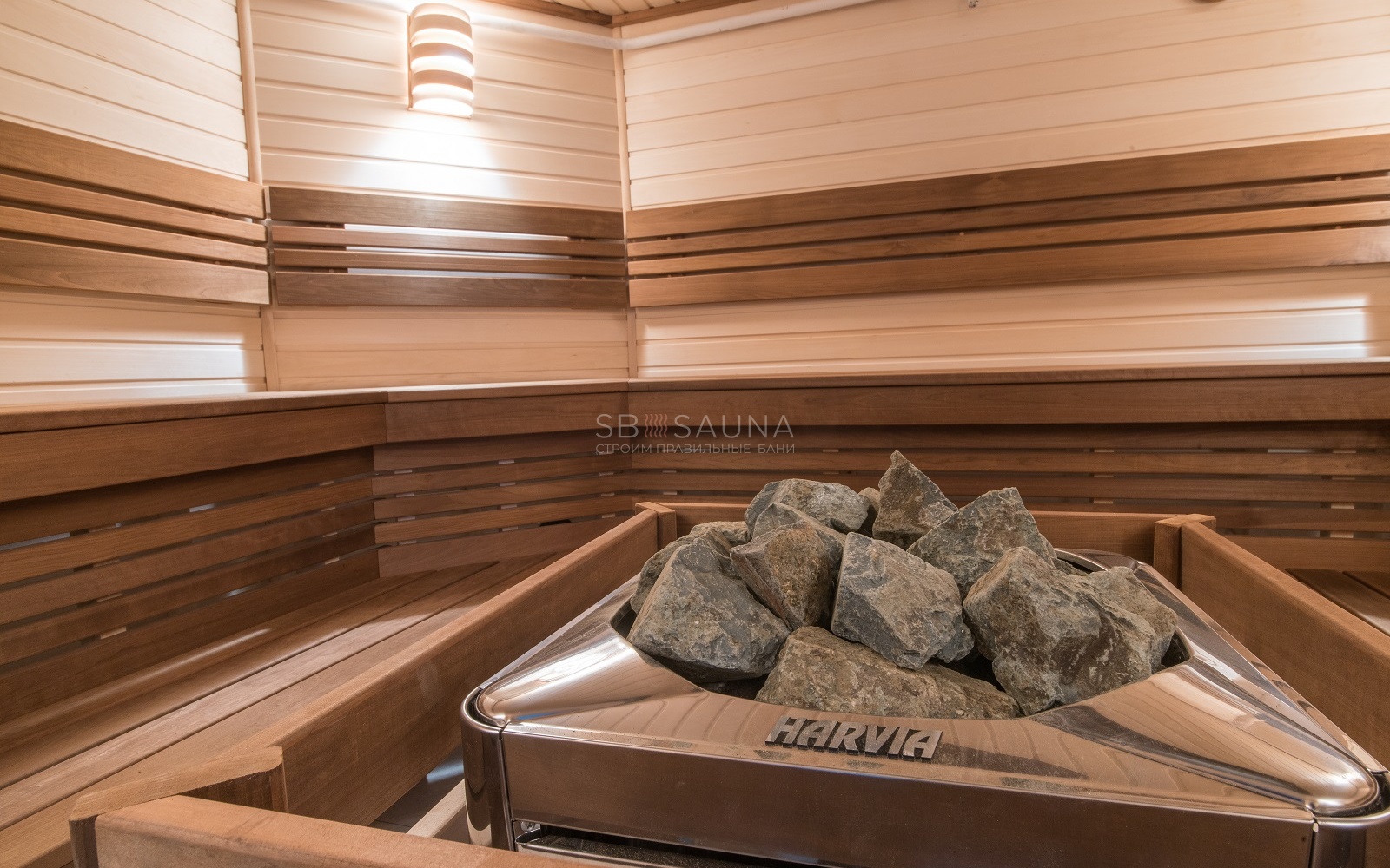 Мы остановились на вагонке из кавказской липе, и термоосине. Термическая обработка делает осину более плотной, снижается уровень впитывания влаги в дерево. Такое дерево выдержит постоянное пребывание в влажной среде, не разбухнет. Так как сауна используется не для домашнего пользования, необходимо было учесть большую ежедневную нагрузку.