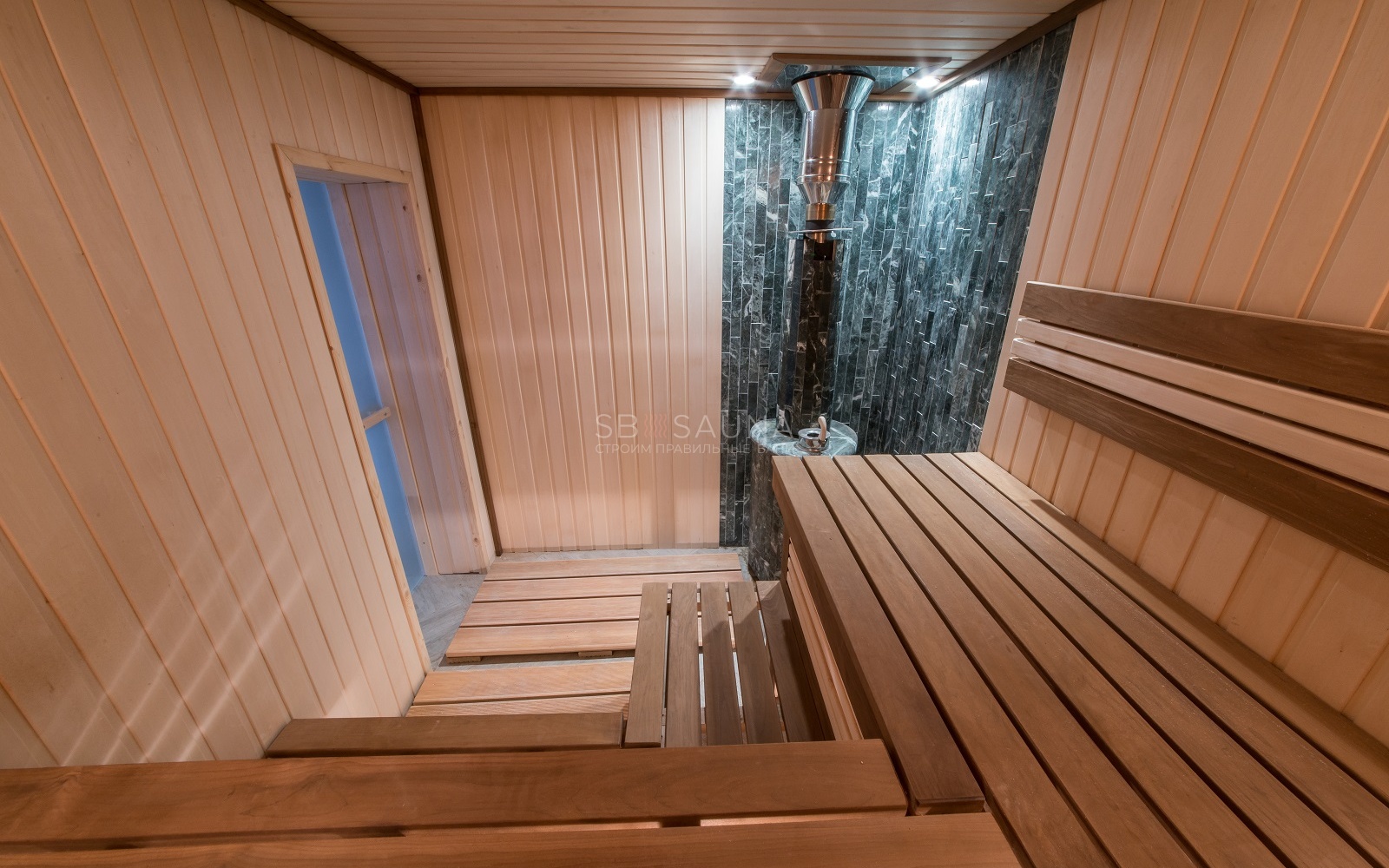 При строительстве данной парной заказчик остановился на классическом варианте. Для облицовки мы использовали современные экологичные материалы, такие как липа и термолипа.